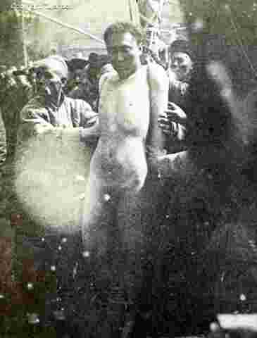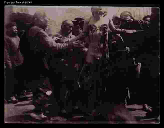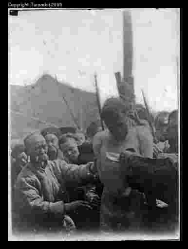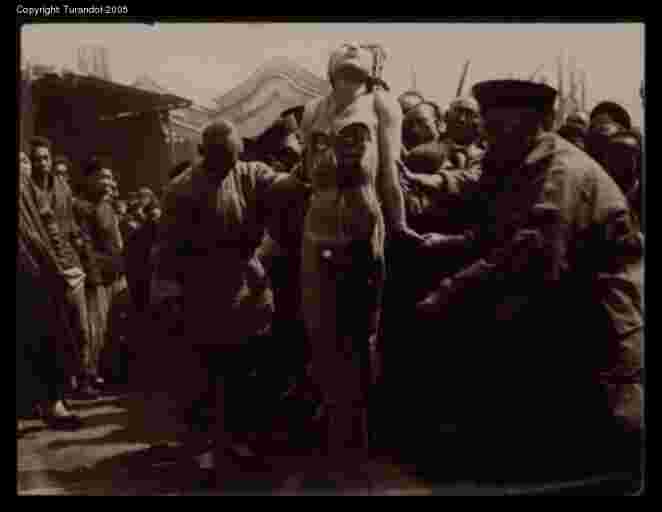Lingchi C, 6th cut (b) The executioner starts to work on the right arm. |