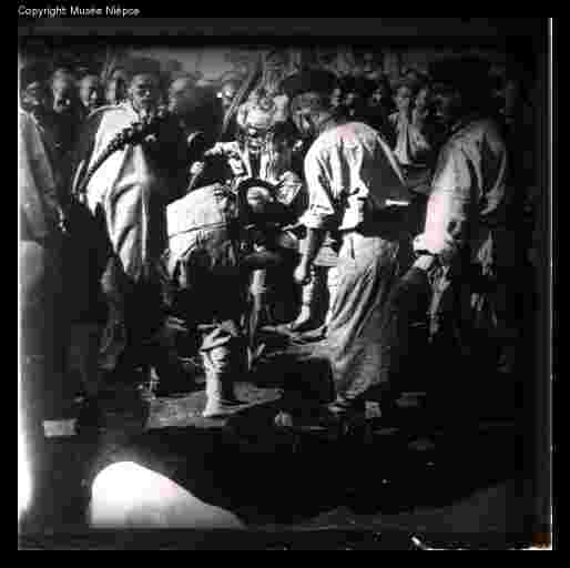 Lingchi A, undertakers (13) Undertaker's assistants wearing in funeral white clothes take care of the remains disposed in a basket. |