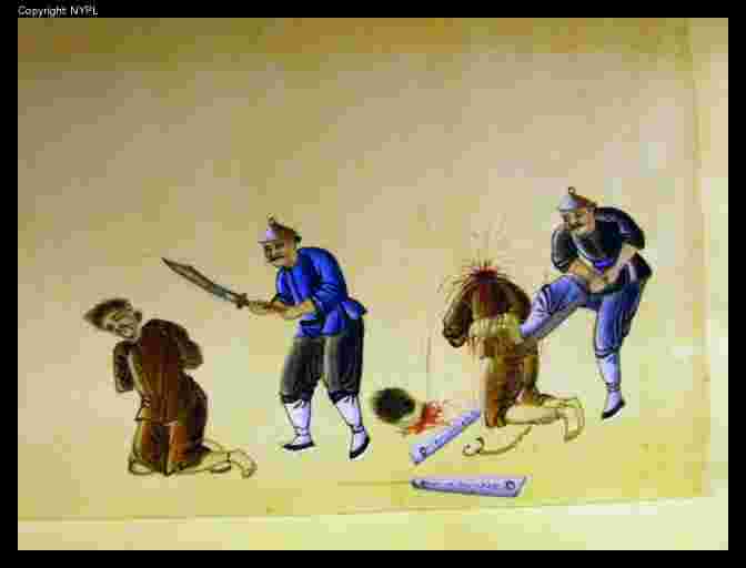 ID: 21 Ressource_Provider: Jérôme Bourgon Title: Kneeling for beheading Information: A standard view in watercolor albums, with many variations