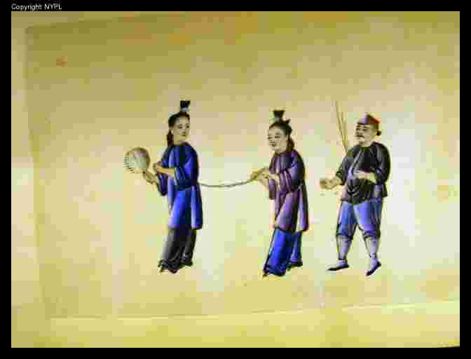 Information: There is no clear explanation about this duet of women, one leading the other with a chain, probably for a body search. In the first, a guard is following, holding birches. The female jailer is holding a fan, like executioners concerned by avoiding pollution in lingchi scenes.