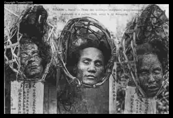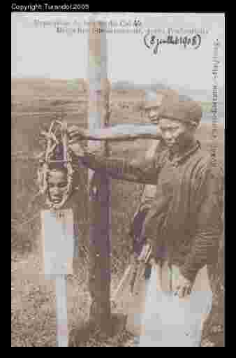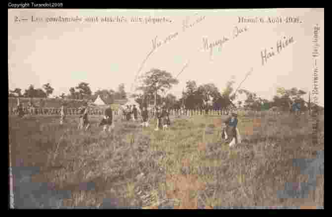 Description: The set is made up of fourteen pictures showing some methos of punishments in Tonkin: cangues and decapitation. The Indochinese penal system is very similar to the Chinese one.