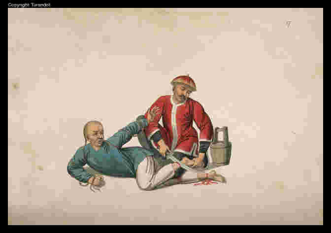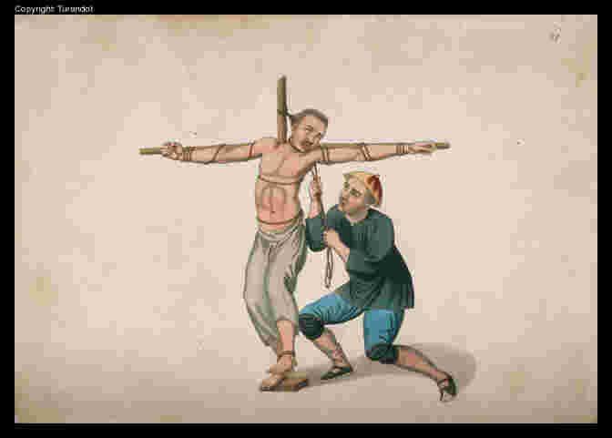 Description: The most widespread album on Chinese punishments in early 19th Europe, which resulted of the reworking of Chinese watercolors from a Canton workshop (Pu-quà) by British painter and engraver (Dadley), on request of a British soldier (Mason), who published them, joining comments in English and French to each of the 22 charts.